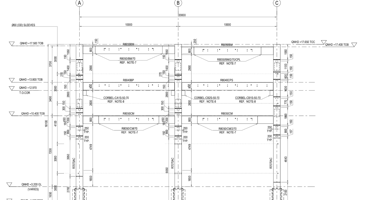 We provide fully detailed reinforcement shop drawings for all concrete elements—slabs, beams, columns, walls, and foundations—prepared in compliance with international standards and site-specific bar bending schedules (BBS).